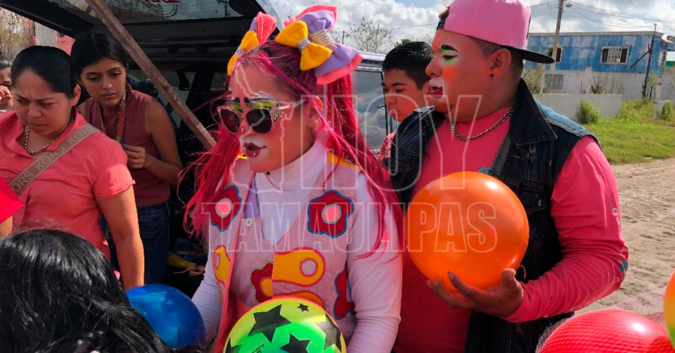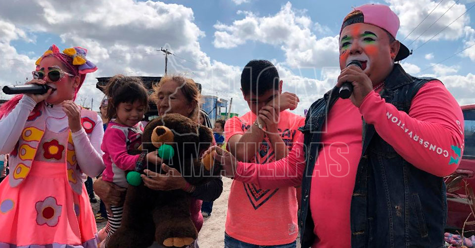 Matamoros, Tamaulipas. - El Grupo de Rescate de Matamoros llevó este día a los niños que viven en la colonia Estrella, juguetes, dulces y diversión con un grupo de payasos que hicieron reír a los pequeñines en este día de Reyes.