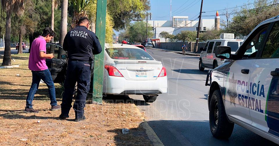 El percance se suscitó en el 20 y 21 Bulevar Adolfo López Mateos, hasta donde llegaron elementos de la Guardia Estatal para auxiliar al conductor.