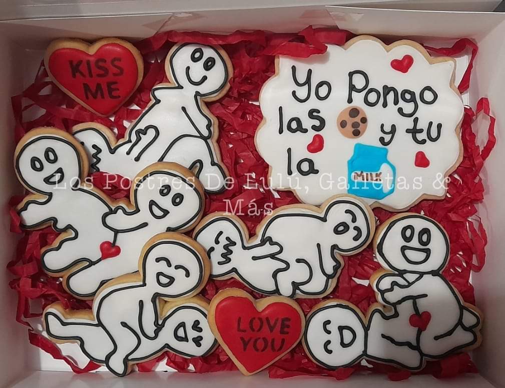 Como por ejemplo ‘Los Postres de Lulú, Galletas y Más’ que ofrece ricas y deliciosas galletas con temáticas de tiernos emojis, corazones y manitas, pero también con decoraciones del Kamasutra.