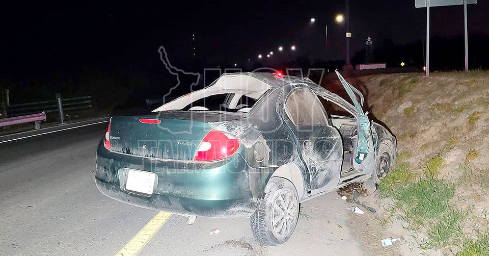 La información del caso señala que el vehículo abandonado era un Dodge Neón modelo 2000, el cual quedó completamente dañado tras el aparatoso percance vial.