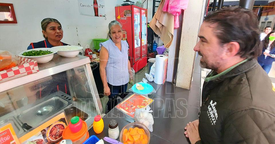Muñoz Cano desarrolló una serie de actividades en Tampico, comprendiendo visitas a medios de comunicación locales y un recorrido en el Mercado Municipal, donde entabló diálogos con los locatarios del recinto.