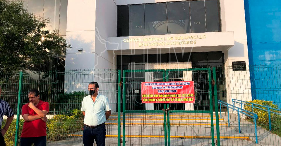 Matamoros, Tamaulipas. - Maestros de la zona escolar número 16 tomaron a temprana hora las instalaciones del Centro Regional de Desarrollo Educativo de Matamoros (Crede), a manera de presionar para que tres de sus compañeros sean asignados a una escuela e inicien a trabajar como catedráticos, ya que recibieron el nombramiento, pero no lo han ejercido debido a que no se han hecho los requerimiento internos, informó el delegado sindical José Daniel Aguilar Hernández.