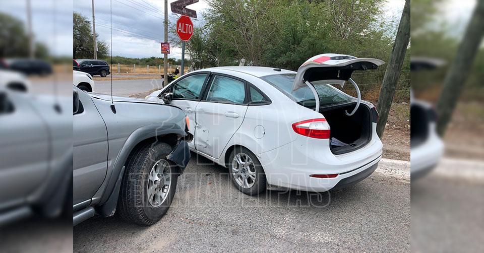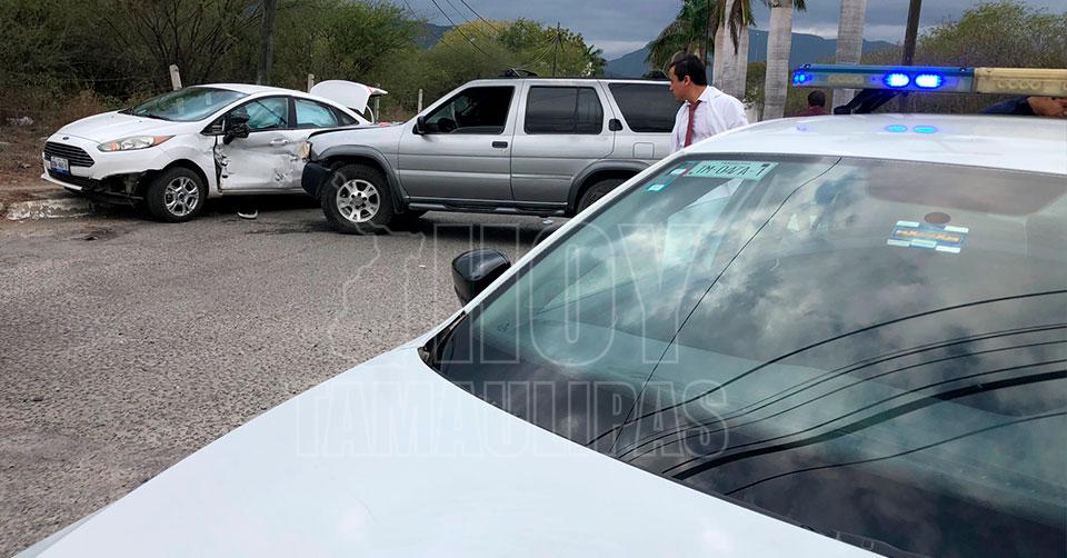 Ciudad Victoria, Tamaulipas. – Un accidente vial dejó como saldo cuantiosos daños materiales en dos unidades motrices esta tarde, en la calle 16 y Avenida Pietra Santa del Fraccionamiento Villa Palermo.