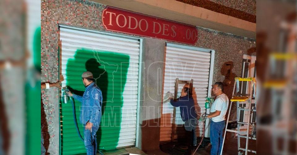 San Luis Potosí, SLP.- Como parte de las acciones de mejoramiento que se llevan a cabo en el centro histórico de la capital potosina, autoridades han pintado 50 cortinas de establecimientos comerciales y retirado el grafiti en 370 metros cuadrados.