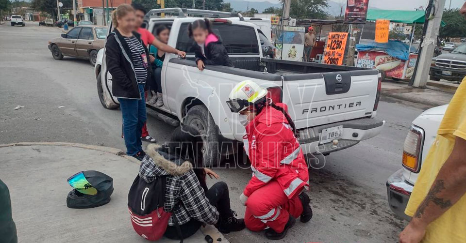 Ciudad Victoria, Tamaulipas. - Una mujer resultó con probable fractura en una de sus piernas luego de ser prensada entre dos camionetas esta tarde, en la calle 16 de Septiembre y Avenida Carlos Adrián Avilés de la capital de Tamaulipas.