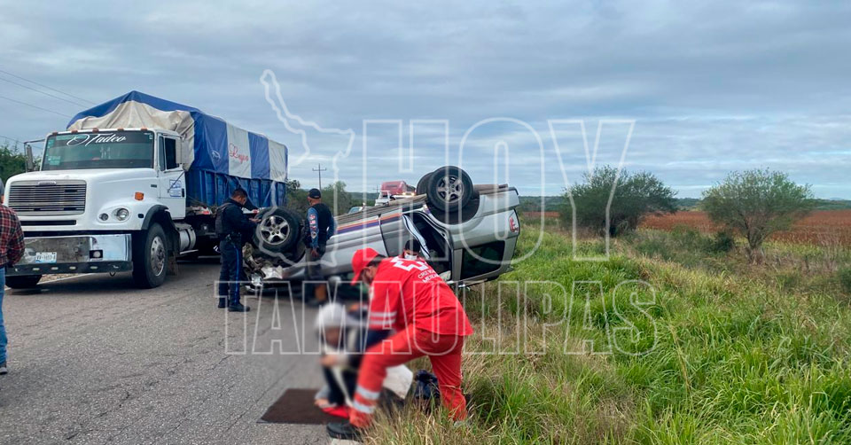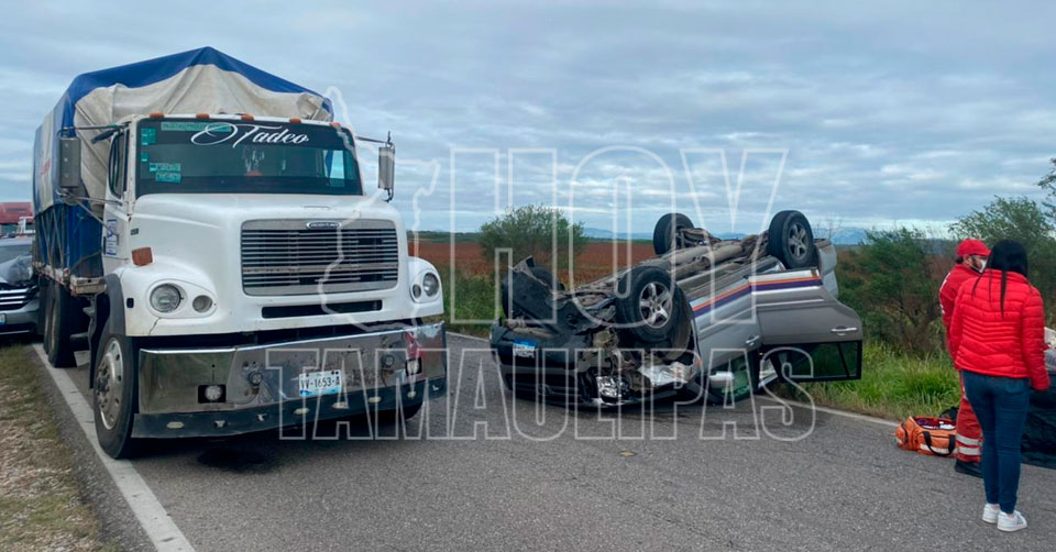 Aldama, Tamaulipas. – Un choque múltiple en el que se vieron involucrados un camión torton y dos camionetas en la Aldama-La Marina, dejó como saldo ocho personas con lesiones menores.