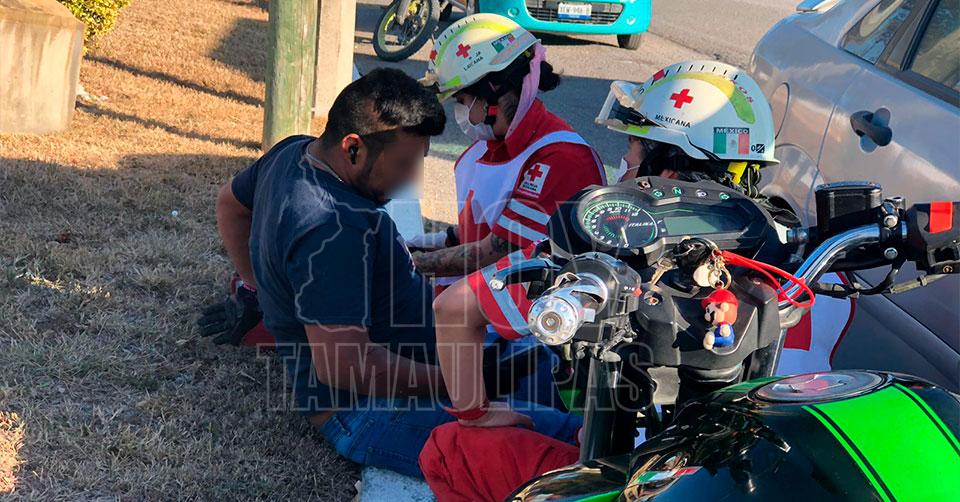 A ese lugar acudieron los paramédicos de la Cruz Roja para valorar a un motociclista, el cual por fortuna no necesitó ser llevado a un centro hospitalario.