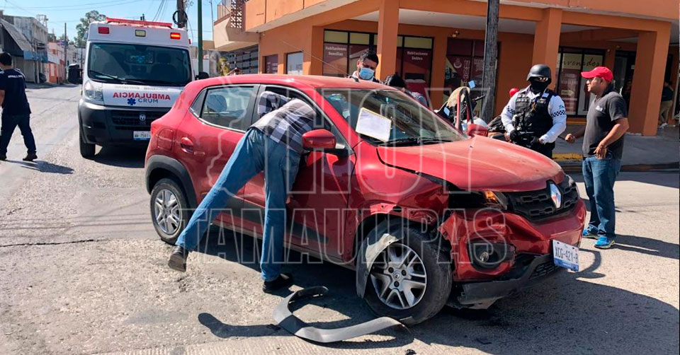 Ciudad Victoria, Tamaulipas. - Una adolescente lesionada y cuantiosos daños materiales dejó como resultado un choque por la omisión de un alto por parte del conductor de un automóvil.