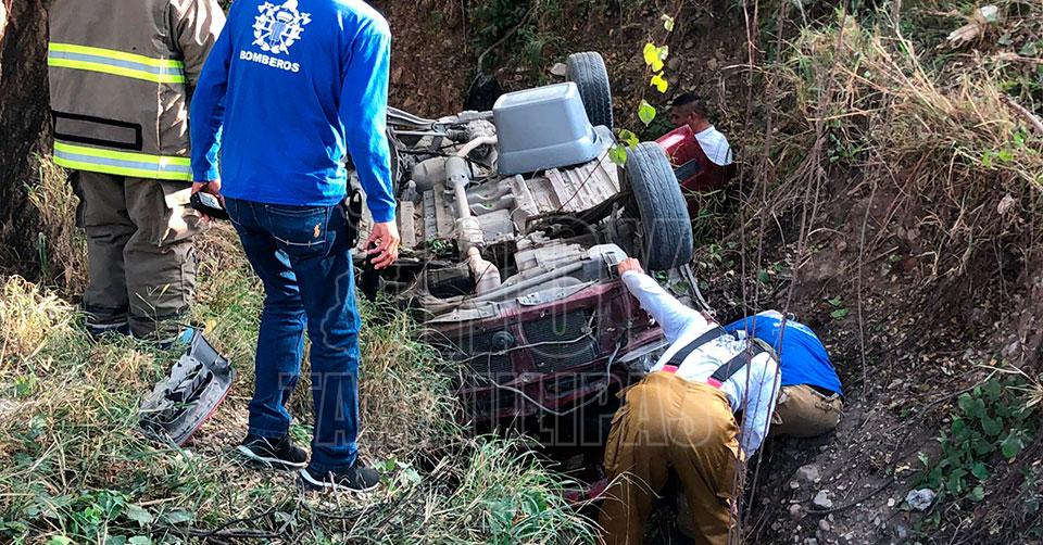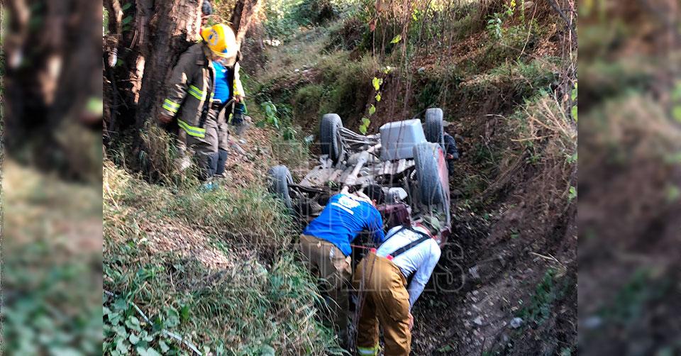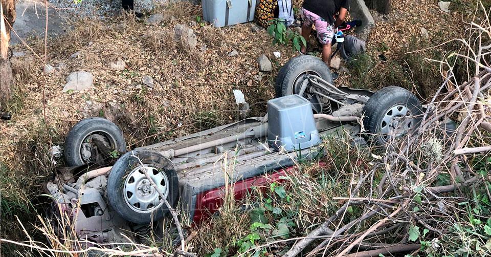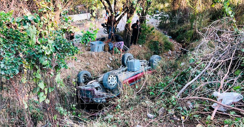 Ebrios vuelcan en barranco y abandonan camioneta en La San Marcos