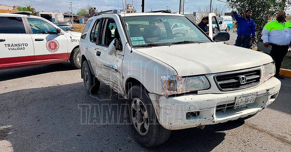 El accidente fue ayer por la tarde en el crucero de Reynosa y 15 de Septiembre, y de esta fue señalada como presunta responsable Nidia, de 45 años, quien conducía una camioneta Honda Passport.