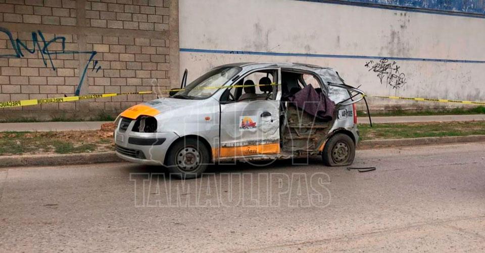 Muere pasajero al ser impactado el taxi por un remolque en Altamira