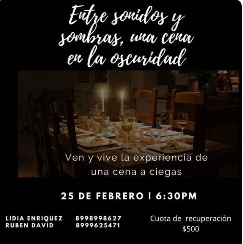 Manifestó que en esta actividad se busca que los asistentes puedan empatizar con las personas con discapacidad visual, en una actividad que se vivirá a oscuras, en donde aparte de disfrutar una cena podrán conocer más acerca de las actividades y vivencias de personas invidentes.
