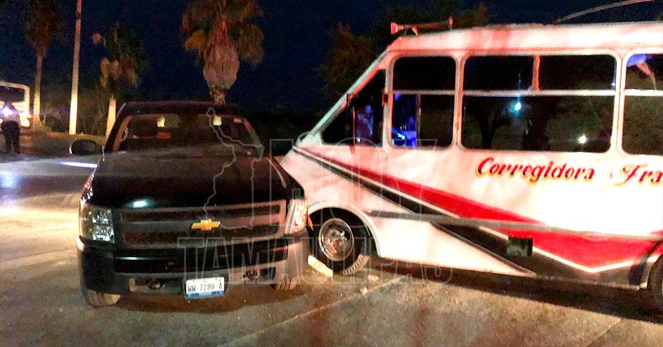 Ciudad Victoria, Tamaulipas.- Alrededor de seis personas lesionadas dejó como saldo un aparatoso choque entre una camioneta y un microbús en el punto conocido como el caracol.