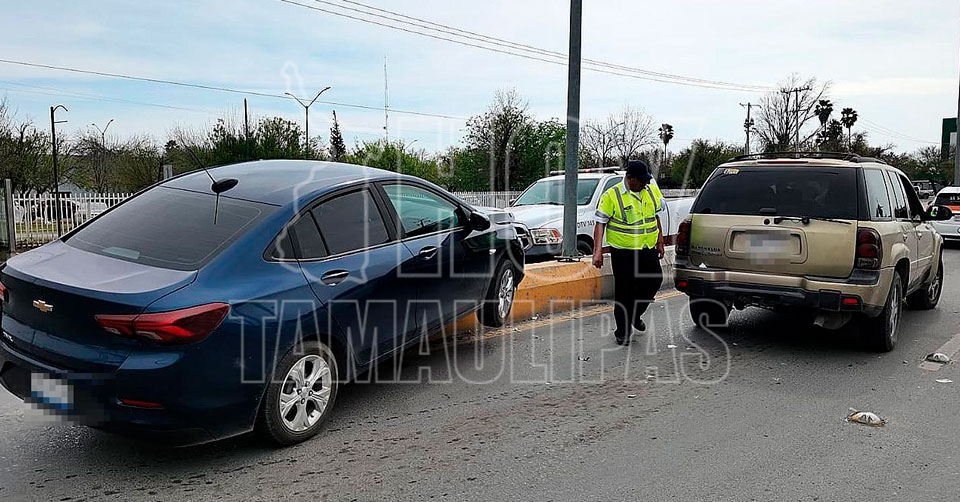 Coche trepa a camellón tras choque en Nuevo Laredo
