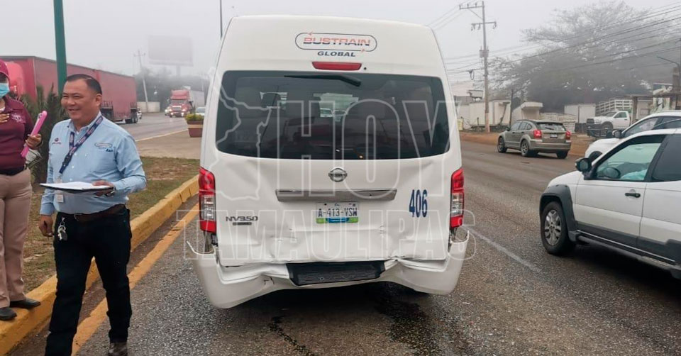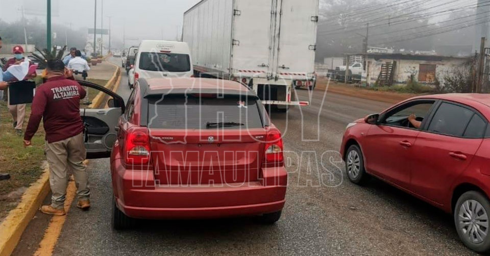 Las autoridades señalaron que la unidad en mención impactó por alcance a una camioneta Nissan NV350 color blanco modelo 2020, guiada por el señor Francisco Javier C de 61 años, accidente ocurrido sobre la Avenida de la Industria de Altamira de sur a norte, a la altura de la empresa Hules Mexicanos.