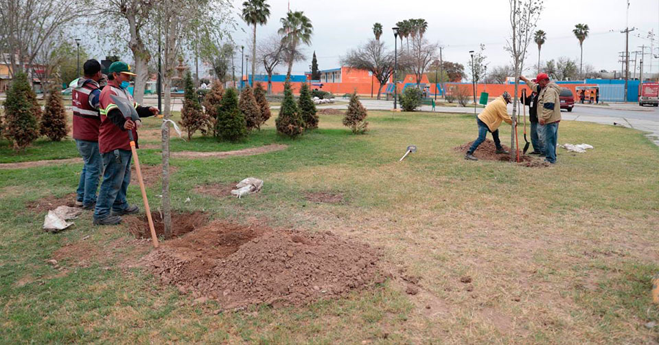 Avanza campaña de reforestación en plazas y parques de Nuevo Laredo
