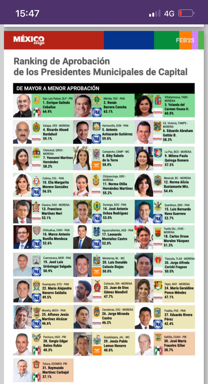 Con una aprobación del 58.3 por ciento, ocupó el sexto lugar en la encuesta del mes de febrero; resultado de las acciones, obras y política pública que ha realizado su administración en beneficio de la población a través del eje rector de su gobierno "Victoria Te Quiero Más".