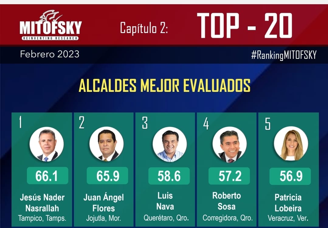 El mandatario porteño obtuvo una aprobación sobresaliente del 66.1% entre 108 alcaldes y 48 alcaldesas del país, cuyo promedio general fue de apenas el 45% de aprobación, lo que destaca el trabajo que al frente del Ayuntamiento de Tampico ha realizado Nader Nasrallah.