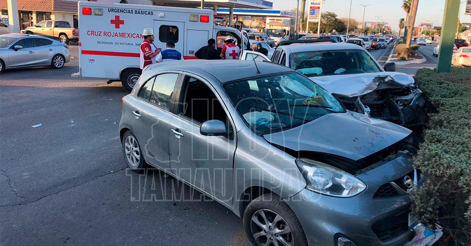 Conductora termina en asiento trasero tras fuerte choque en Victoria