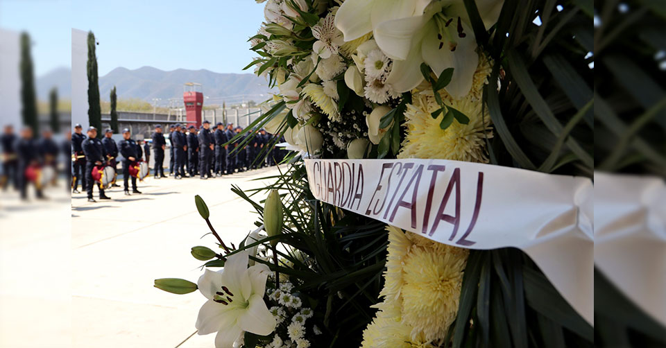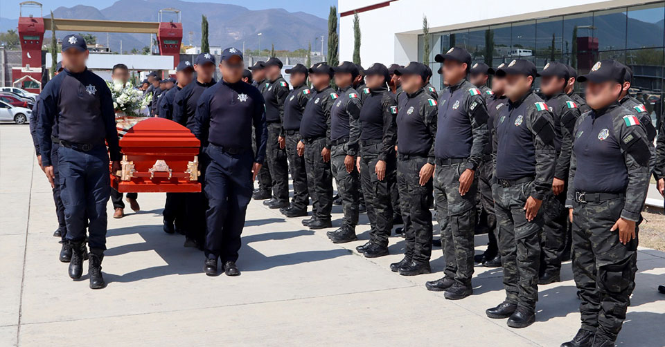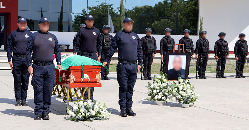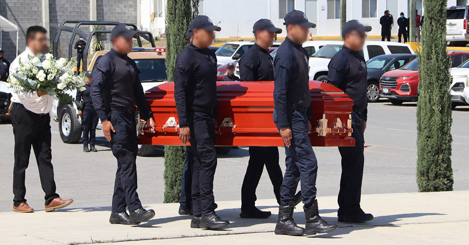 Tras un minuto de silencio, una salva de honor y el toque de silencio interpretado por la Banda de Guerra de la Guardia Estatal, se procedió al cortejo fúnebre para acompañar al elemento fallecido en funciones de alto impacto, asimismo, el titular de la SSPT refrendó el compromiso de la actual administración de no desamparar a sus familiares.
