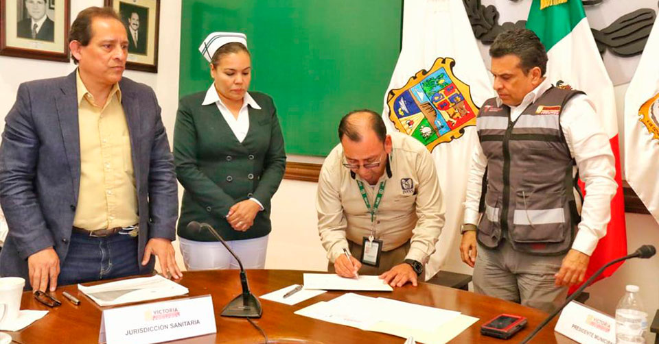 El acuerdo fue firmado durante la sesión de la Mesa de Salud Municipal por el representante del delegado del IMSS, Federico Marín Martínez, y Maggid Rodríguez Avendaño, titular de la Jurisdicción Sanitaria Número, en representación del secretario de Salud de Tamaulipas, Vicente Joel Hernández Navarro.