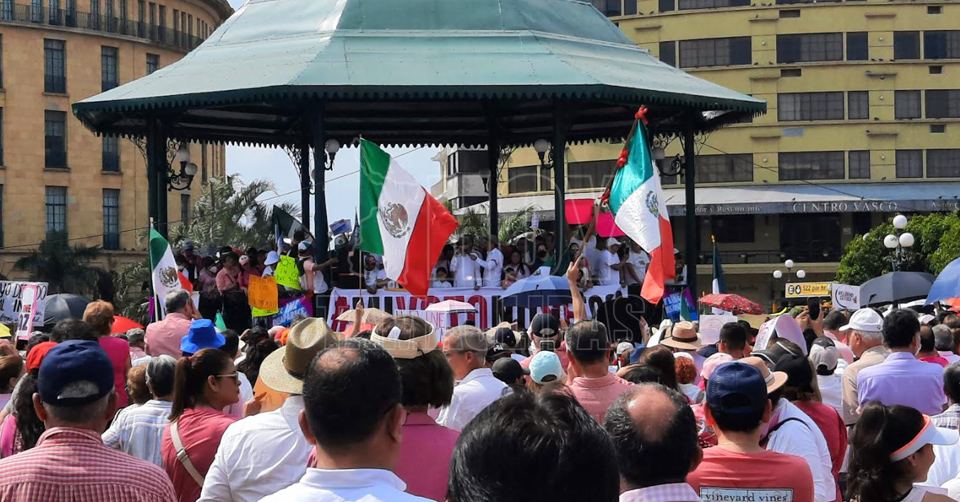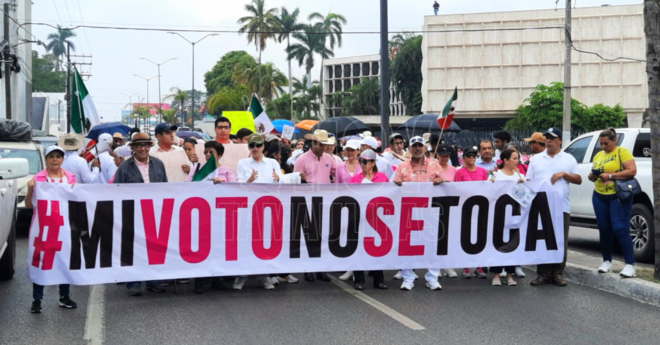 Posteriormente la totalidad de los convocados se colocó en el carril norte sur de la avenida Miguel Hidalgo, portando una manta con la leyenda "#MiVotoNoSeToca", enfilándose al Centro Histórico, donde ya otros manifestantes estaban a la espera en la Plaza de la Libertad.