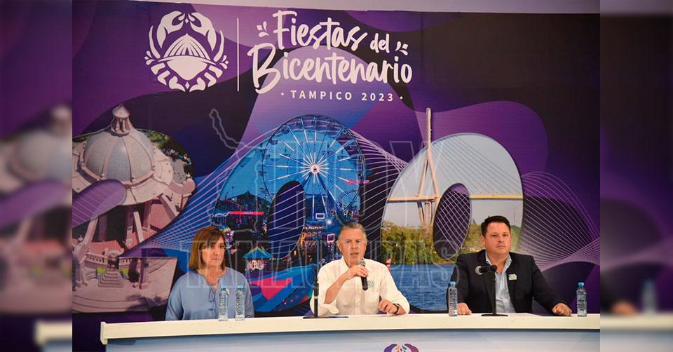Tampico, Tamaulipas.- Del 31 de marzo al 16 de abril se llevarán a cabo las Fiestas del Bicentenario Tampico 2023 informó, este lunes, el presidente Municipal Chucho Nader al encabezar el anuncio oficial de esta tradicional celebración junto a la Diputada Federal Rosa González Azcárraga y el empresario de espectáculos Michel Rivero, representante de la firma Espectaculares García.