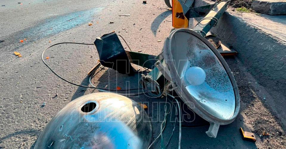 Se trepó al camellón central, para luego estrellarse contra un poste de luces preventivas, además derribó un pequeño árbol.