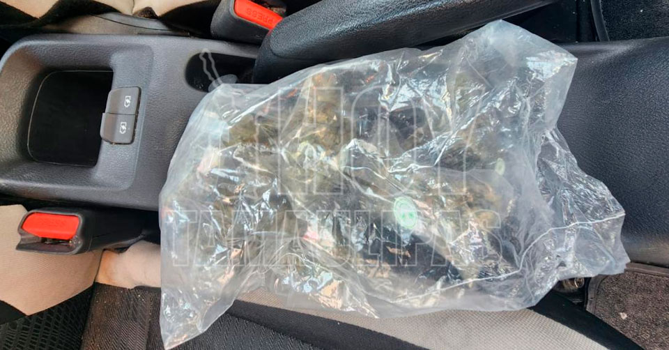 Los sujetos andaban a bordo de un vehículo Nissan Versa color gris, y al interior de este se encontraron bolsitas de hierba verde con las características propias de la marihuana.