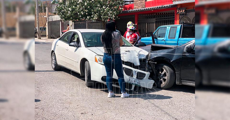 Ciudad Victoria, Tamaulipas. – Una mujer resultó lesionada esta tarde luego de perder el control del vehículo que conducía debido al exceso de velocidad, y se estrelló contra otra unidad en la calle Rigoberto Castillo del Fraccionamiento Rincón de Tamatán.