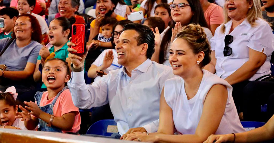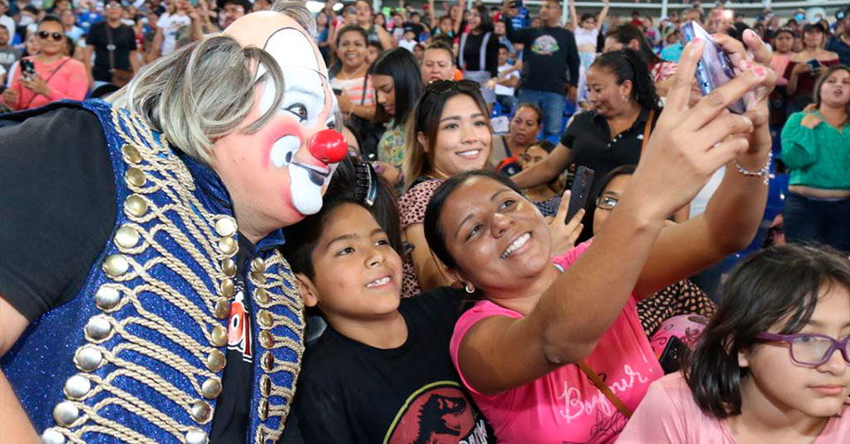 Entre risas, cantos y baile, Lalo y Lucy disfrutaron con sus hijos Galy, Abraham y Jacobo de un momento muy divertido junto a las familias que abarrotaron el centro de espectáculos, dónde se presentaron shows infantiles y rifas de regalos para las niñas y niños victorenses.