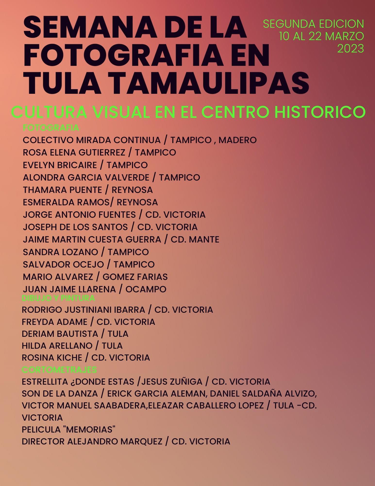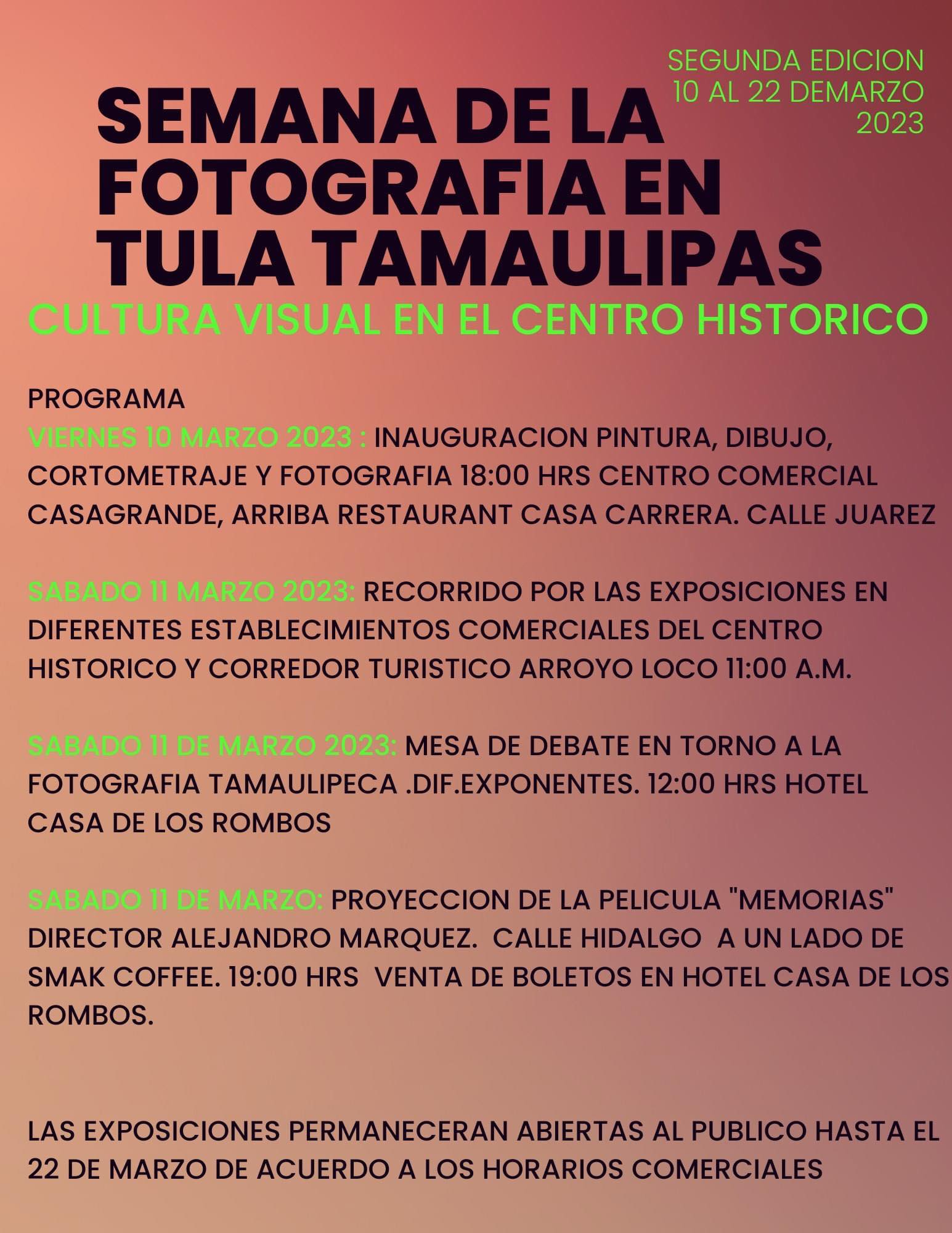 Tula, Tamaulipas. – Más de 20 fotógrafos y artistas tamaulipecos presentarán sus obras en la Segunda Edición de la Semana de la Fotografía que se llevará a cabo en Tula Pueblo Mágico.