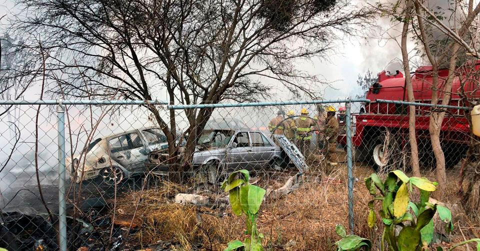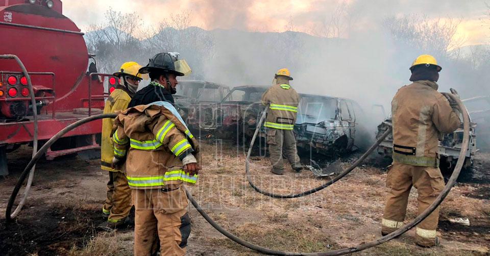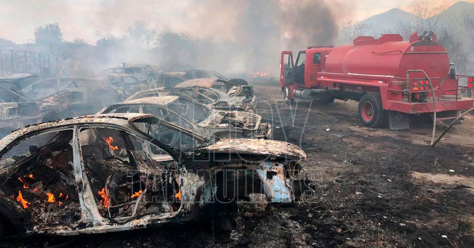 Ciudad Victoria, Tamaulipas. - Un incendio en un yonke de autos ubicado en la colonia Vamos Tamaulipas en Ciudad Victoria arrasó con al menos 50 vehículos chatarra durante esta tarde.