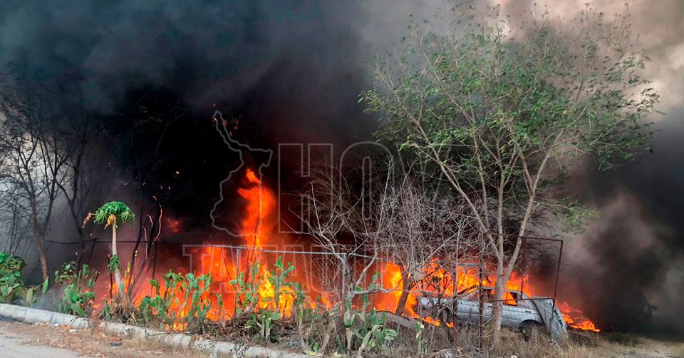 Elementos de Protección Civil municipal y Bomberos, con apoyo de una motobomba de Protección Civil Tamaulipas, sofocaron el fuego y tardaron más de una hora en combatirlo.