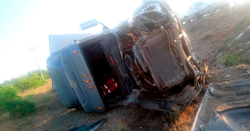 Trailero resulta herido en volcadura cerca de Nuevo Laredo
