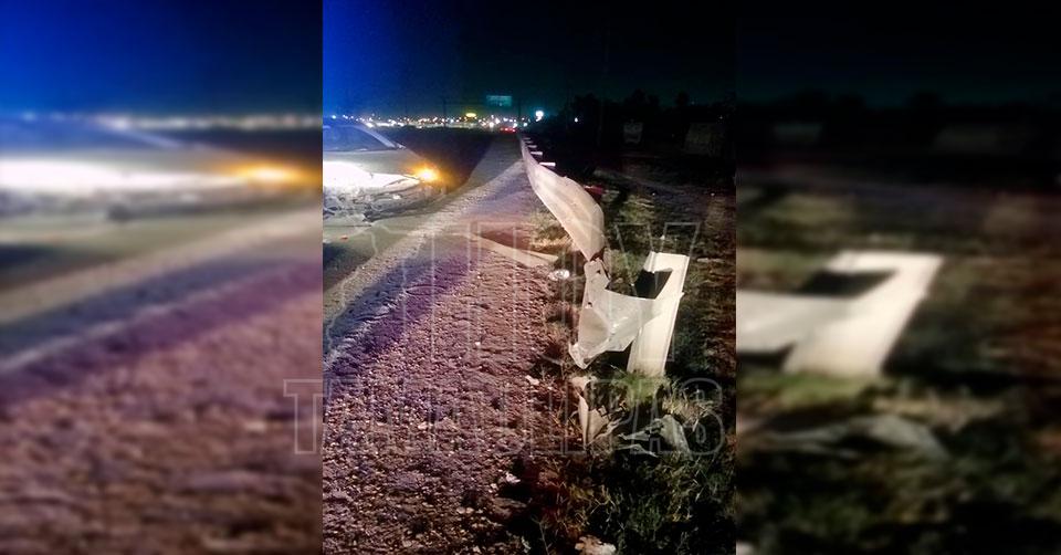 Nuevo Laredo, Tamaulipas.— Tras chocar contra un barandal de contención de la Carretera a Piedras Negras en Nuevo Laredo, una persona abandonó su vehículo para no pagar los daños que causó al municipio.