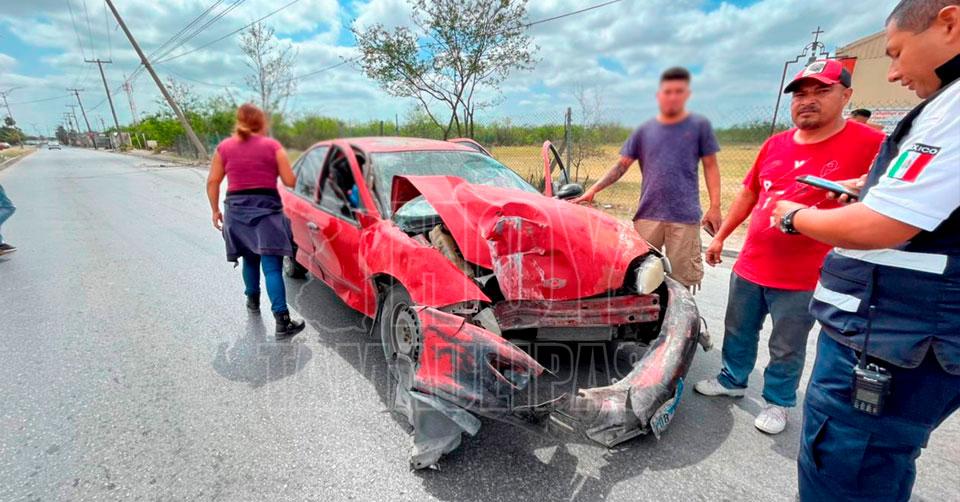 Varios lesionados deja el fuerte choque de un auto contra poste en Matamoros