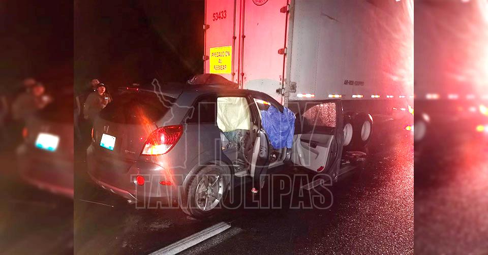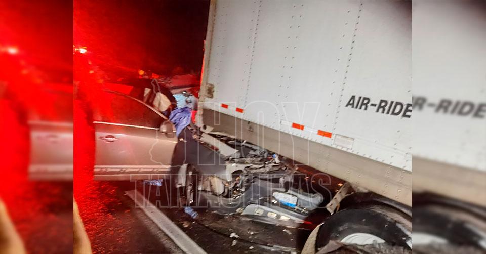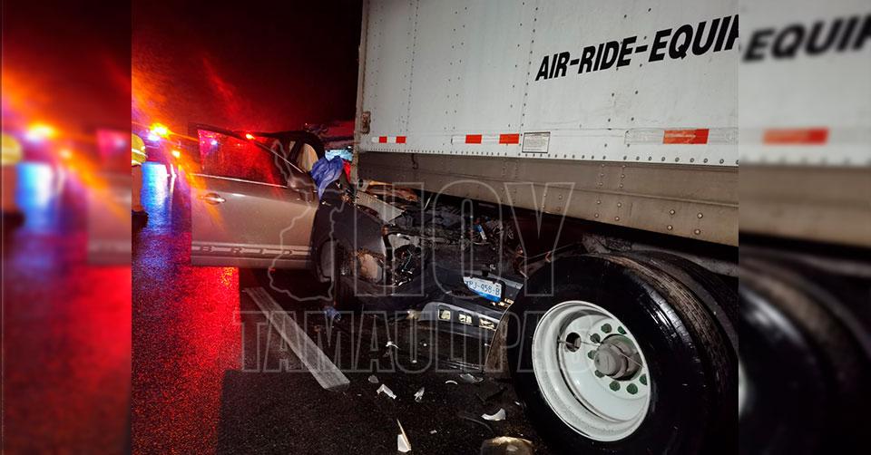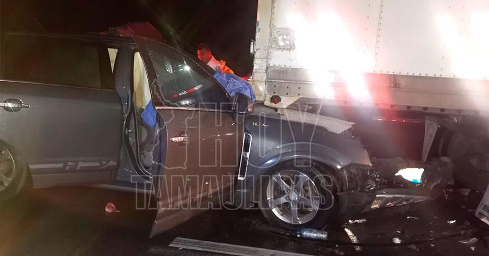 Ciudad Victoria, Tamaulipas.- Una persona sin vida y cinco más lesionados, entre ellos una menor de edad, fue el saldo hasta el momento de un choque entre una camioneta y un tráiler registrado esta noche, en el kilómetro 12 de la carretera Rumbo Nuevo.