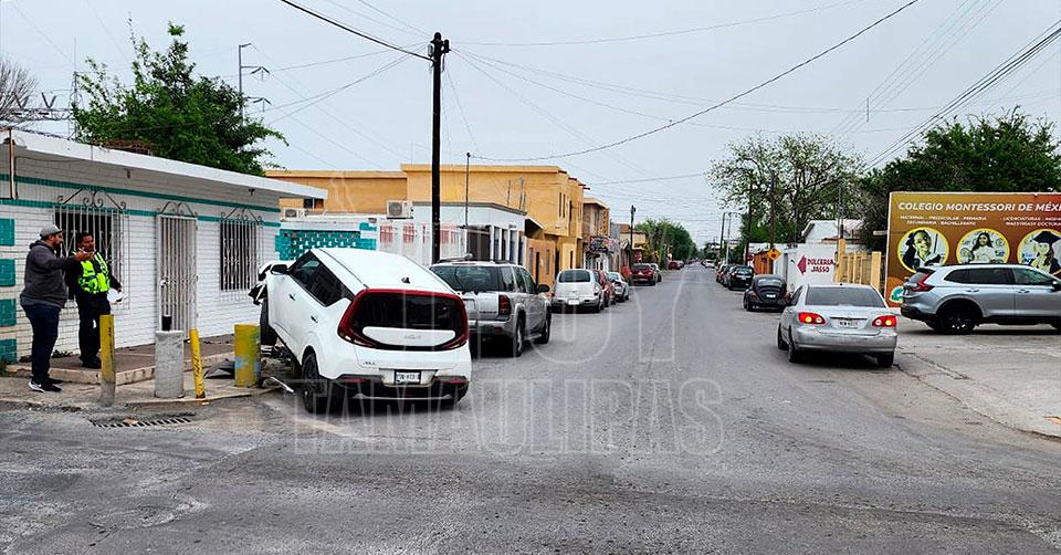 Chofer de camioneta queda trepado en tubo en Nuevo Laredo