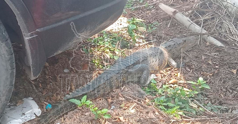 Ciudad Madero, Tamaulipas. - Un cocodrilo de más de un metro de largo fue capturado en el patio de la escuela Secundaria número 5 de Ciudad Madero.