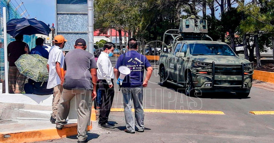 Así, entre empujones, porras y el intento de algunas personas por hacerle llegar documentos fue la recepción del titular del Poder Ejecutivo federal en Tampico, observándose más personal de la Guardia Nacional que el habitual, de un mayor número de elementos del Ejército que hacían recorridos y de personal de la Guardia Estatal.