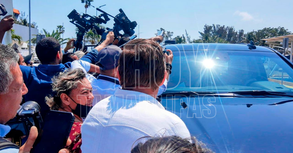 Tampico, Tamaulipas. - Después de su arribo al Aeropuerto Internacional de Tampico para cumplir con una agenda de trabajo en el sur del Estado, el presidente de México Andrés Manuel López Obrador no respondió a preguntas de los informadores locales sobre si se esperan más detenciones en el país, luego de que el ex secretario de Seguridad Pública Genaro García Luna fue hallado culpable de varios cargos criminales en Estados Unidos.
