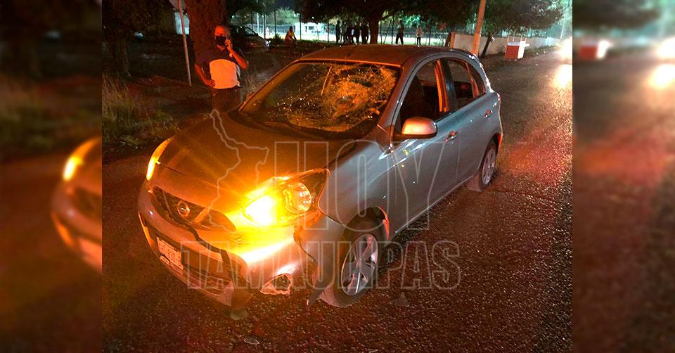 Debido al Estado de ebriedad al llegar al cruce con la calle Mariano Matamoros el herido ignoró un disco metálico de alto y fue impactado por un automóvil de la marca Nissan tipo March.