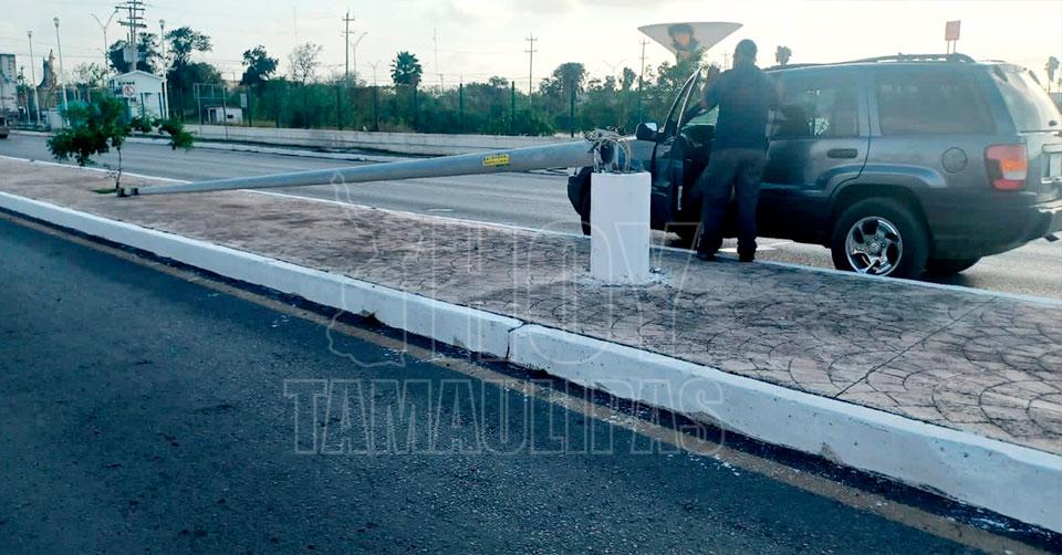 Cae poste sobre camioneta en movimiento en Matamoros