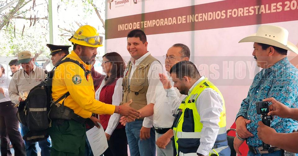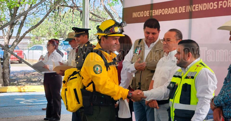 Ciudad Victoria, Tamaulipas. - Una brigada de 5 tamaulipecos de la Comisión Nacional Forestal (Conafor) fue reconocida por su participación en el combate de incendios forestales en Chile el pasado mes de febrero, durante la ceremonia del “Inicio de temporada de incendios forestales 2023”.