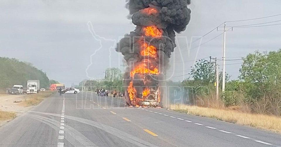 Padilla, Tamaulipas. – La circulación de la carretera federal 85 a la altura del kilómetro 42 en las inmediaciones del Barretal se encuentra cerrada en su totalidad debido al incendio de un autobús.