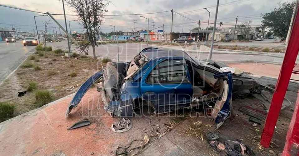 Conductor se salva de morir tras fuerte choque en Reynosa; auto quedó inservible