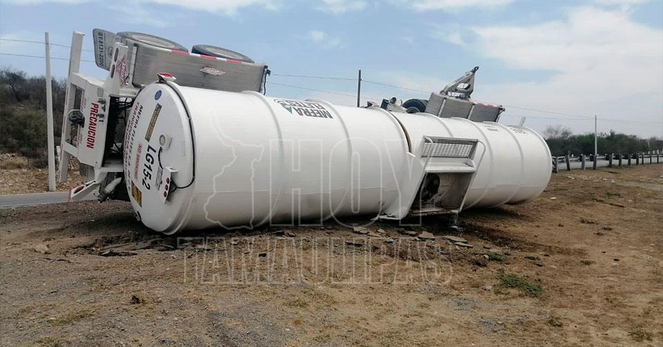 Vuelca pipa a la altura de Güémez, Tamaulipas