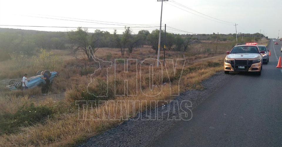 Güémez, Tamaulipas. - Una persona resultó lesionada tras una volcadura ocurrida en el kilómetro 33 de la Carretera Federal 85 Ciudad Victoria-Monterrey, a la altura del municipio de Güémez, siendo auxiliada por personal de la Guardia Estatal.
