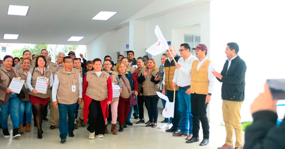 El evento estuvo encabezado por el coordinador estatal de Bienestar, Samuel Badillo y el coordinador regional Luis Miguel Iglesias, donde los promotores salieron a las diferentes colonias a levantar los datos que servirán para hacer llegar los programas y beneficios del Estado a la gente.